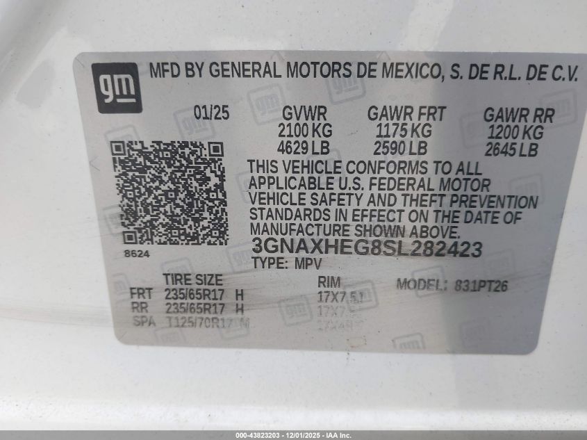 2025 CHEVROLET EQUINOX 2025 року Бензин, 1.5, Передній привід, vin - 3GNAXHEG8SL282423 з США