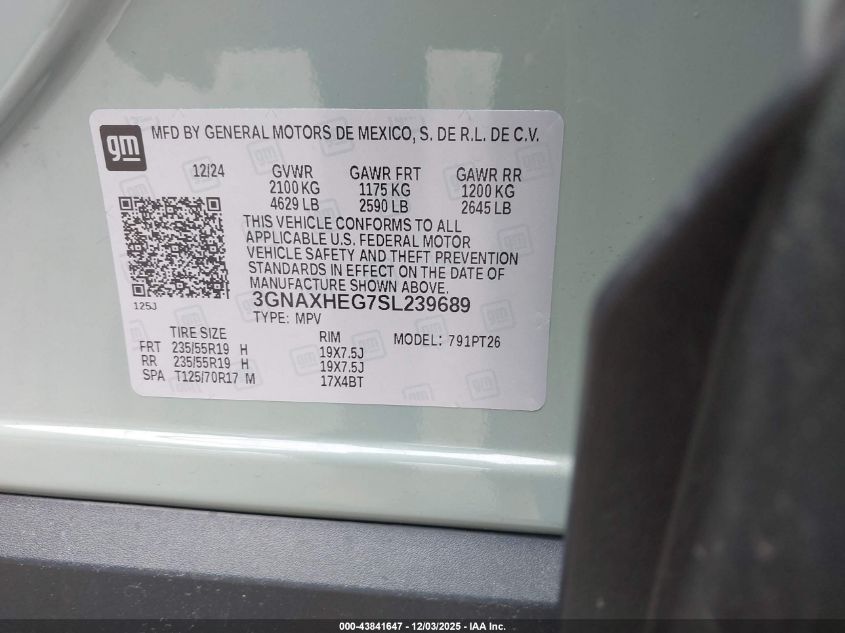2025 CHEVROLET EQUINOX 2025 року Бензин, 1.5, Передній привід, vin - 3GNAXHEG7SL239689 з США