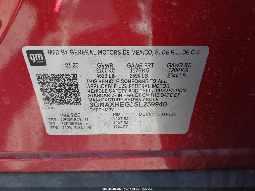 2025 CHEVROLET EQUINOX 2025 року Бензин, 1.5, Передній привід, vin - 3GNAXHEG1SL259940 з США