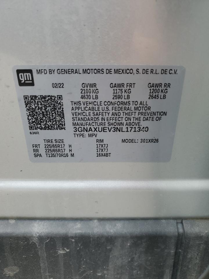 2022 CHEVROLET EQUINOX 2022 року Бензин, 1.5, Повний привід, vin - 3GNAXUEV3NL171340 з США