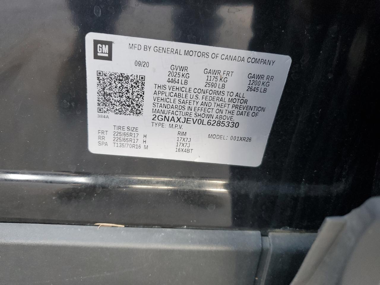 2020 CHEVROLET EQUINOX 2020 року Бензин, 1.5, , vin - 2GNAXJEV0L6285330 з США