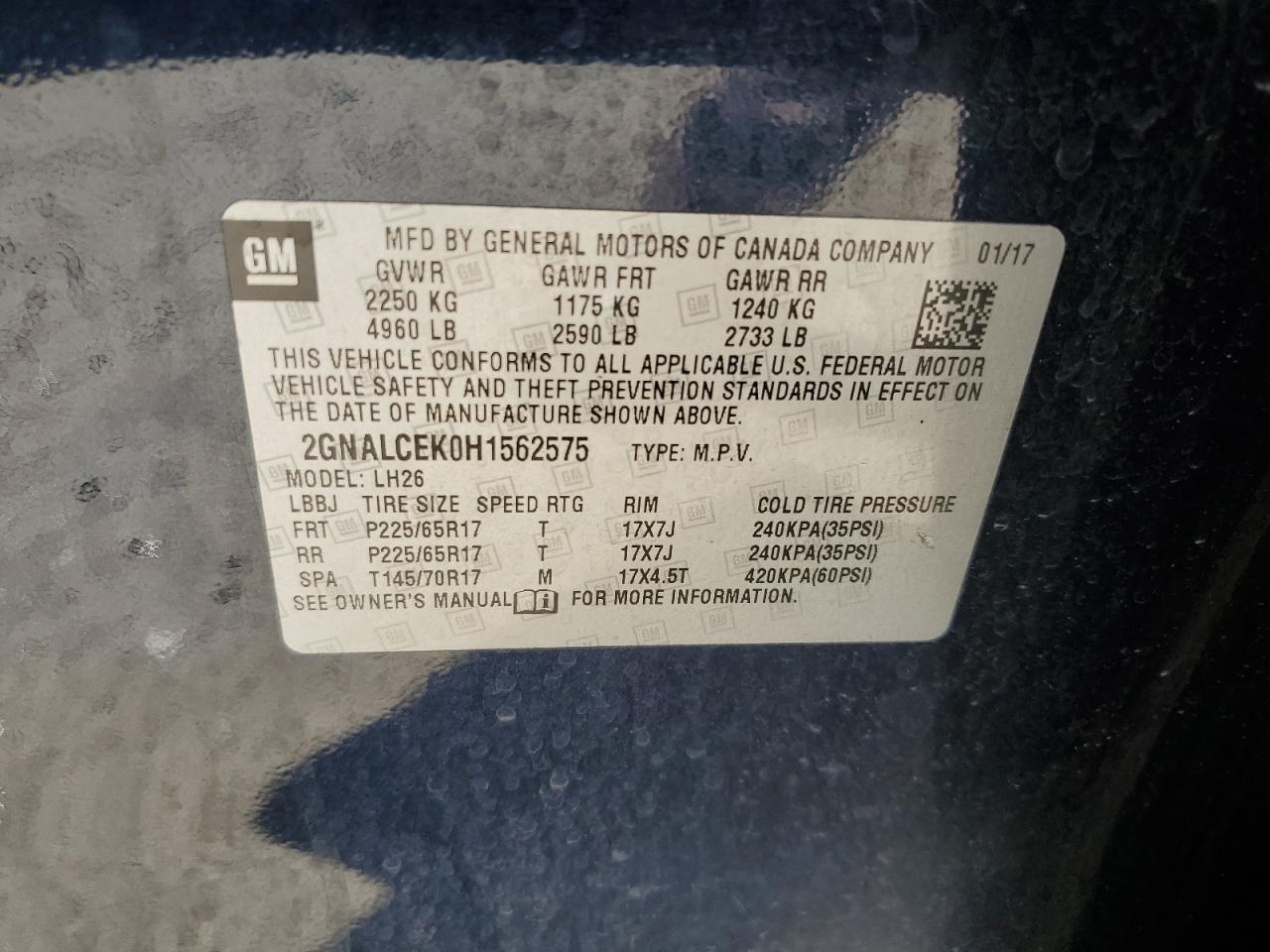 Колір СинійЦиліндри 4VIN 2GNALCEK0H1562575Стан Заводиться та їде (перевірено)Ушкодження Передня або задня AutoRIA