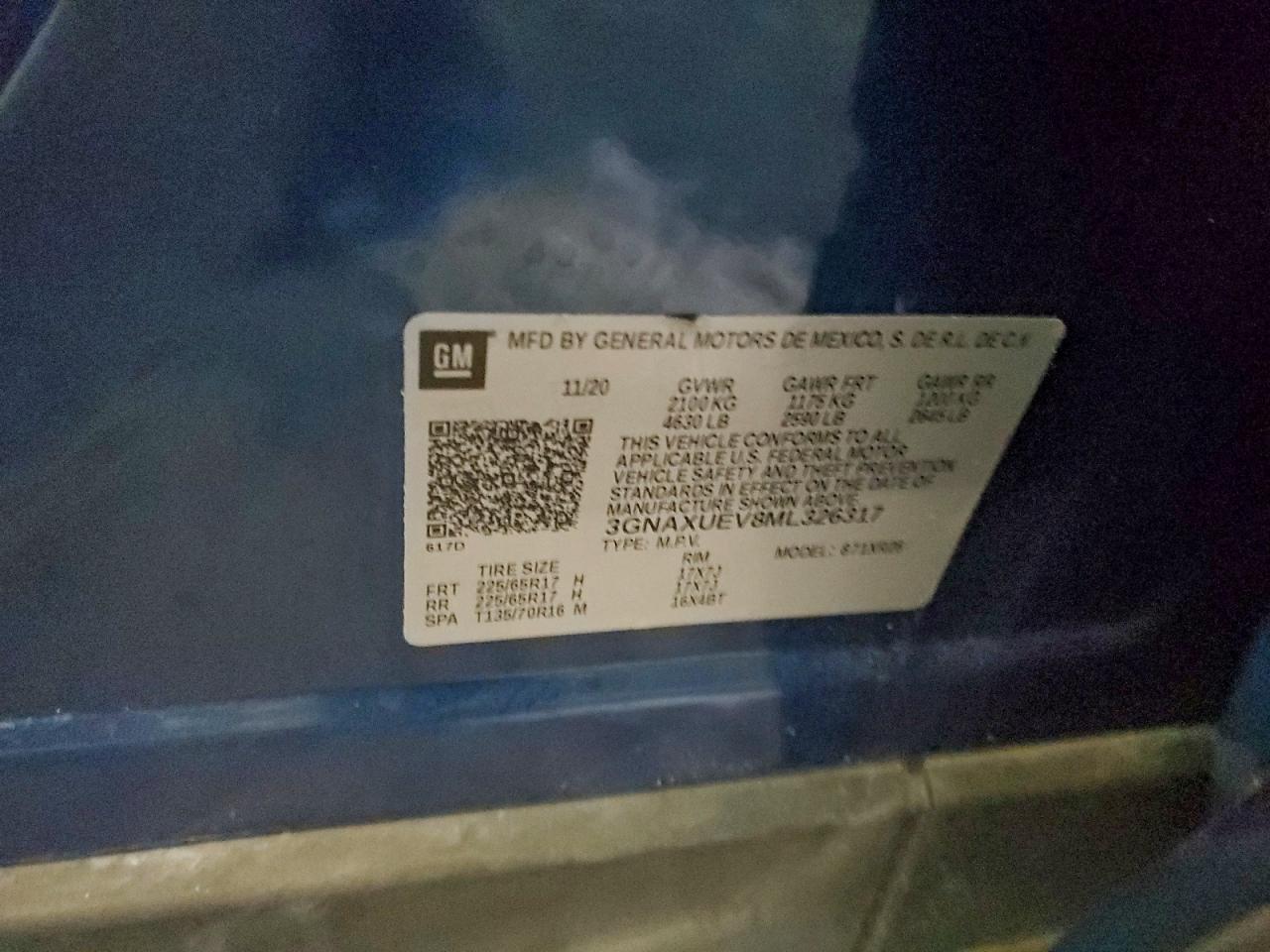 2021 CHEVROLET EQUINOX 2021 року Бензин, 1.5, Повний привід, vin - 3GNAXUEV8ML326317 з США