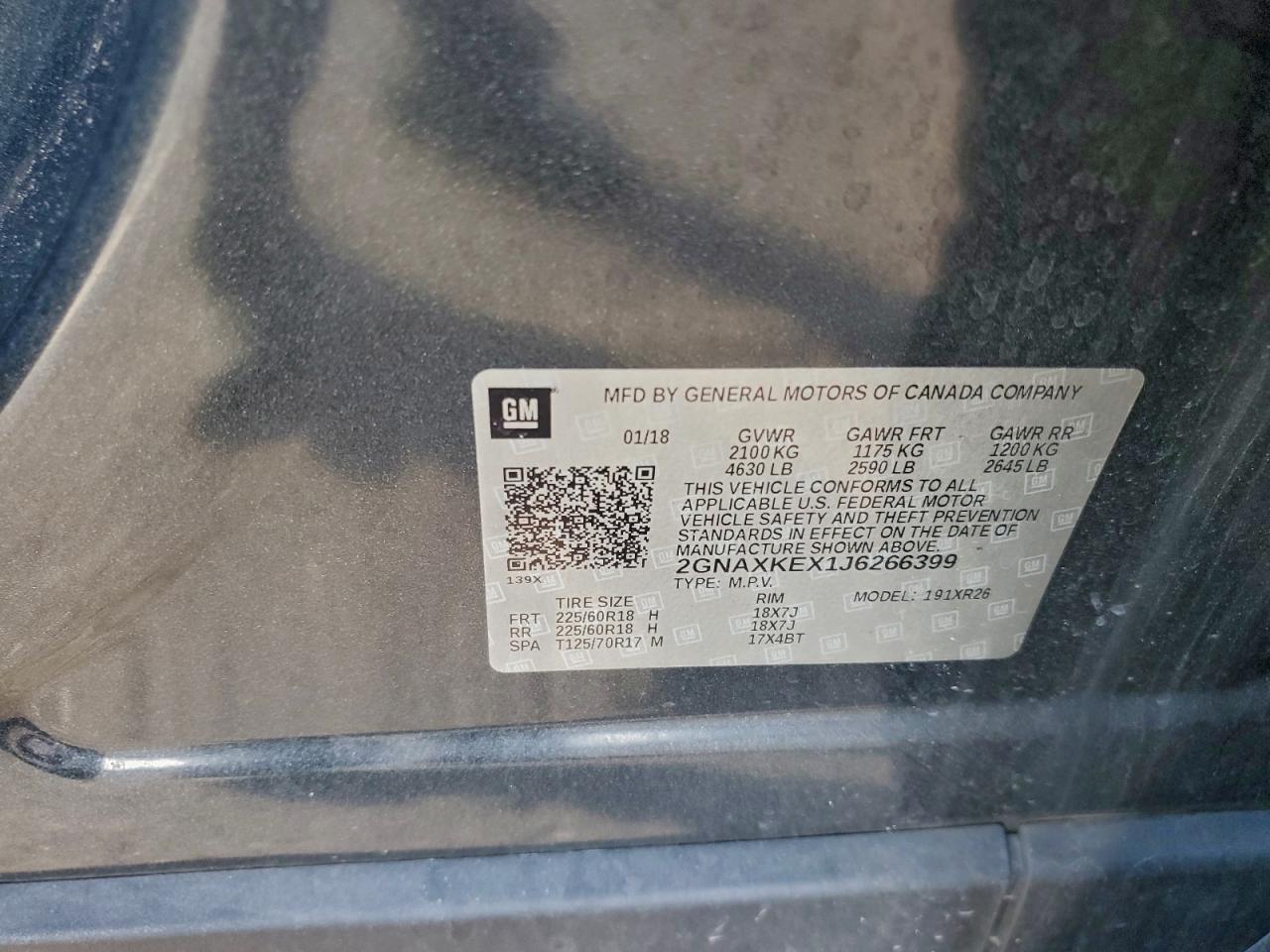 Колір СірийЦиліндри 4VIN 2GNAXKEX1J6266399Стан ЗаводитьсяУшкодження Передня або задня AutoRIA