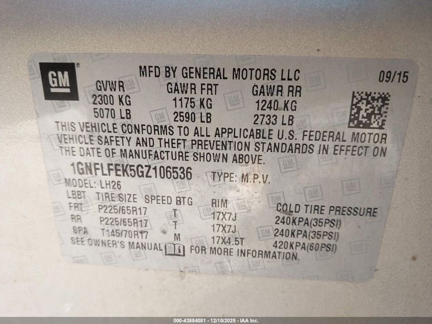 2016 CHEVROLET EQUINOX 2016 року Бензин, 2.4, Повний привід, vin - 1GNFLFEK5GZ106536 з США