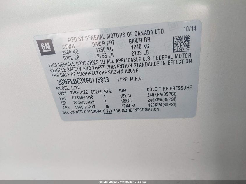 2015 CHEVROLET EQUINOX LT