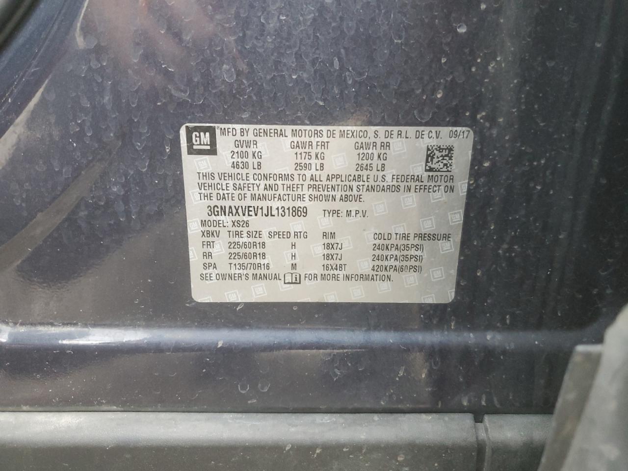 Колір СинійЦиліндри 4Привід Повний привідVIN 3GNAXVEV1JL131869Стан ЗаводитьсяУшкодження Передня або задня AutoRIA