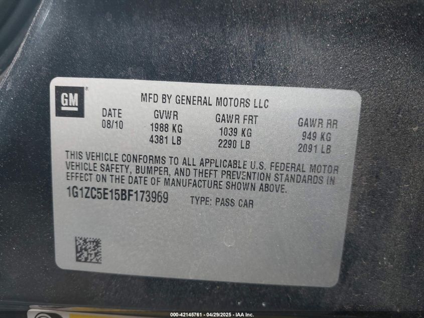 2011 CHEVROLET MALIBU 2011 року Бензин, 2.4, Передній привід, vin - 1G1ZC5E15BF****** з США