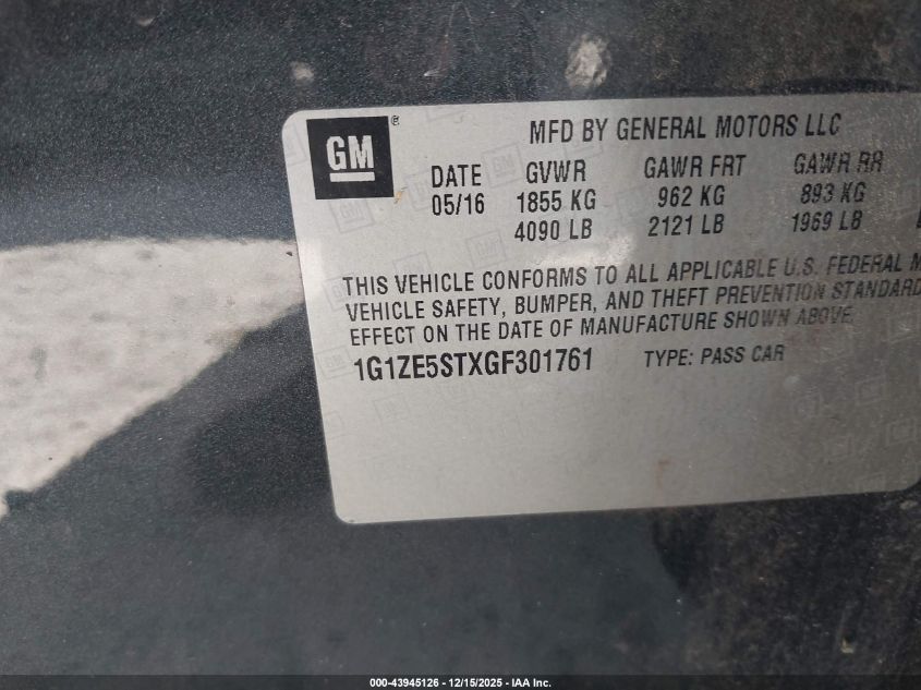 2016 CHEVROLET MALIBU 2016 року Бензин, 1.5, Передній привід, vin - 1G1ZE5STXGF301761 з США