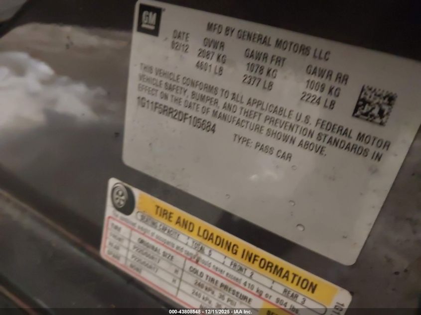 2013 CHEVROLET MALIBU 2013 року Бензин, 2.4, Передній привід, vin - 1G11F5RR2DF105684 з США