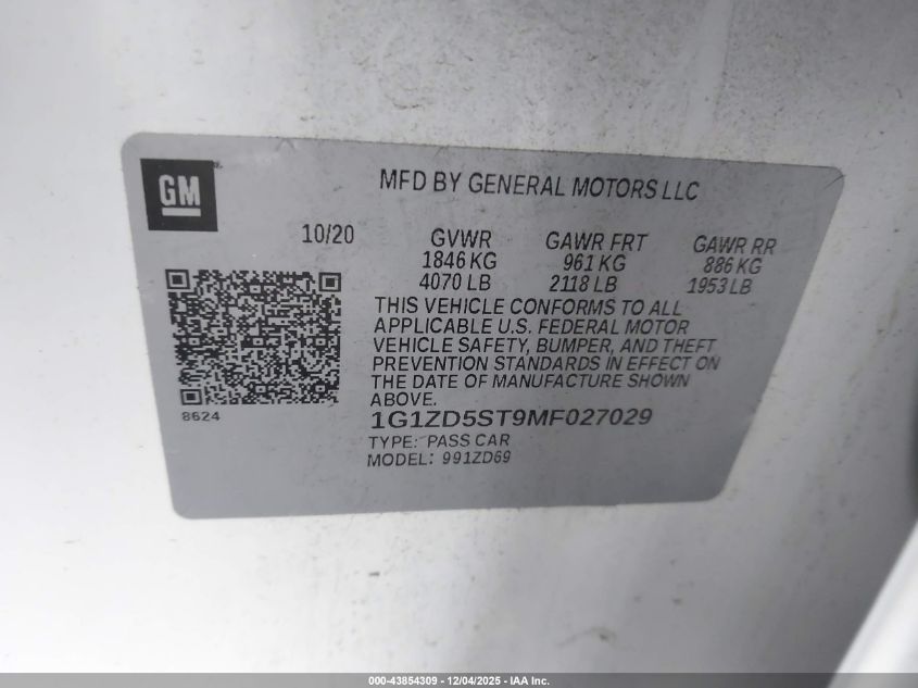 2021 CHEVROLET MALIBU 2021 року Бензин, 1.5, Передній привід, vin - 1G1ZD5ST9MF027029 з США
