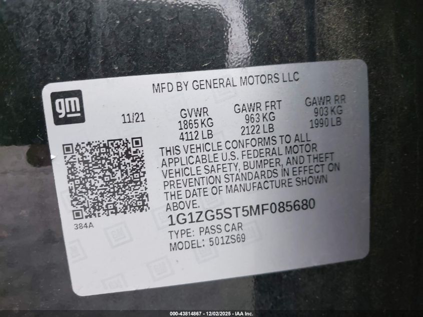 2021 CHEVROLET MALIBU 2021 року Бензин, 1.5, Передній привід, vin - 1G1ZG5ST5MF085680 з США