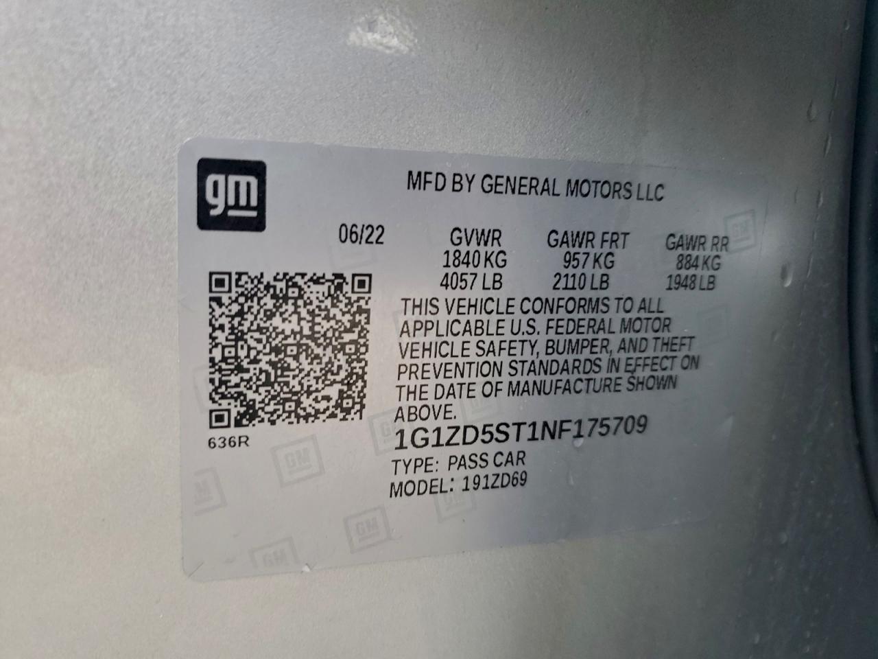2022 CHEVROLET MALIBU 2022 року Бензин, 1.5, , vin - 1G1ZD5ST1NF175709 з США