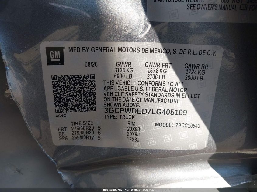 Колір СірийЦиліндри 8VIN 3GCPWDED7LG405109Стан Заводиться та їде (перевірено)Ушкодження Ліва сторона