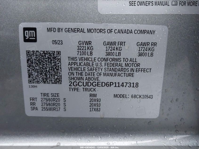 2023 CHEVROLET SILVERADO 1500 2023 року Бензин, 5.3, Повний привід, vin - 2GCUDGED6P1147318 з США