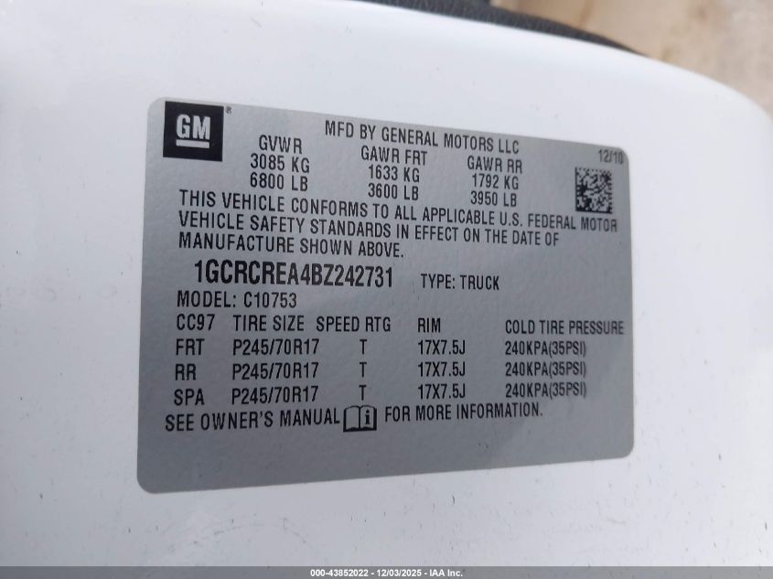 2011 CHEVROLET SILVERADO 1500 2011 року Бензин, 4.8, , vin - 1GCRCREA4BZ242731 з США