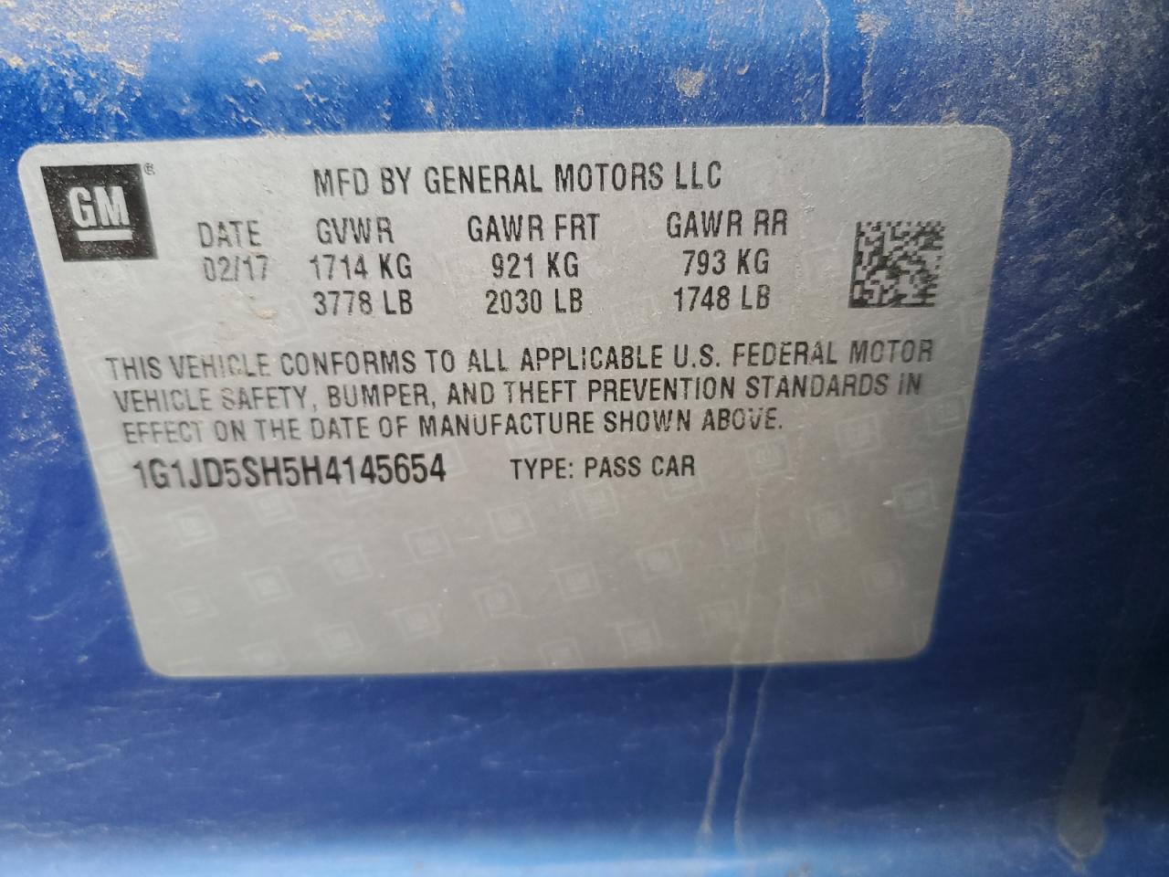 2017 CHEVROLET SONIC 2017 року Бензин, 1.8, , vin - 1G1JD5SH5H4145654 з США