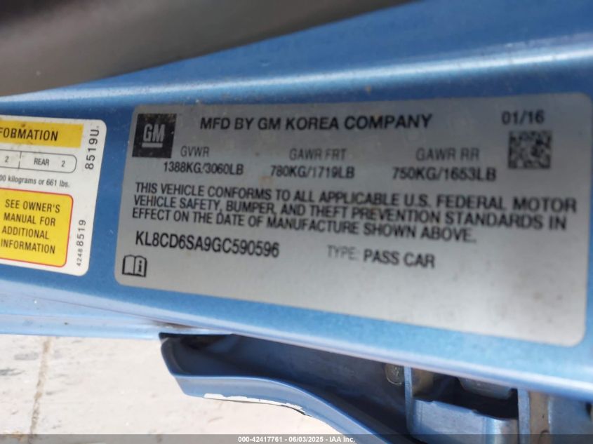 2016 CHEVROLET SPARK 2016 року Бензин, 1.4, Передній привід, vin - KL8CD6SA9GC****** з США