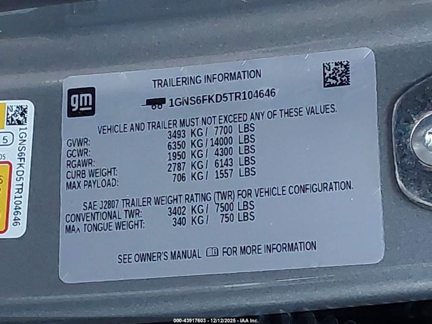 2026 CHEVROLET SUBURBAN 2026 року Бензин, 5.3, Повний привід, vin - 1GNS6FKD5TR104646 з США