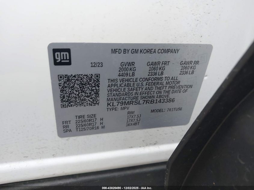 2024 CHEVROLET TRAILBLAZER 2024 року Бензин, 1.3, Повний привід, vin - KL79MRSL7RB143386 з США