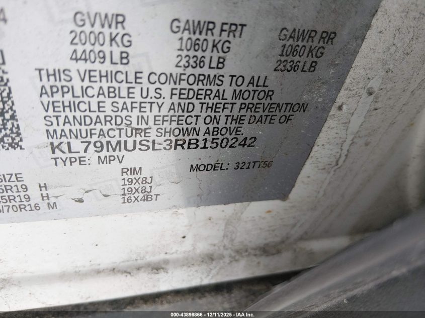 2024 CHEVROLET TRAILBLAZER 2024 року Бензин, 1.3, Повний привід, vin - KL79MUSL3RB150242 з США