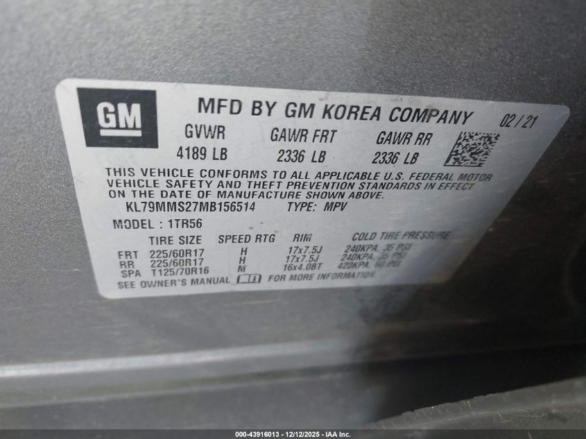 2021 CHEVROLET TRAILBLAZER 2021 року Бензин, 1.2, Передній привід, vin - KL79MMS27MB156514 з США
