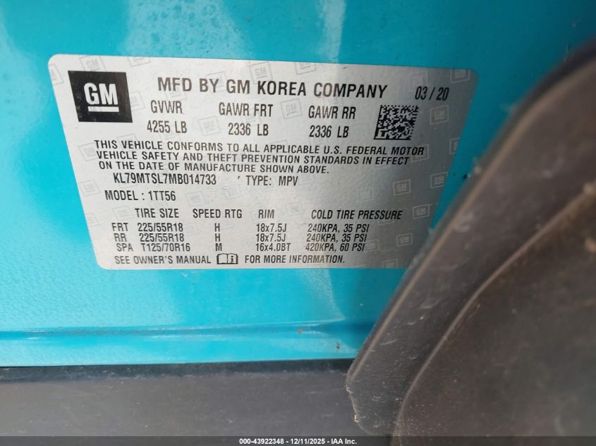 2021 CHEVROLET TRAILBLAZER 2021 року Бензин, 1.3, Передній привід, vin - KL79MTSL7MB014733 з США