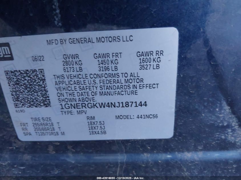 2022 CHEVROLET TRAVERSE 2022 року Бензин, 3.6, Передній привід, vin - 1GNERGKW4NJ187144 з США