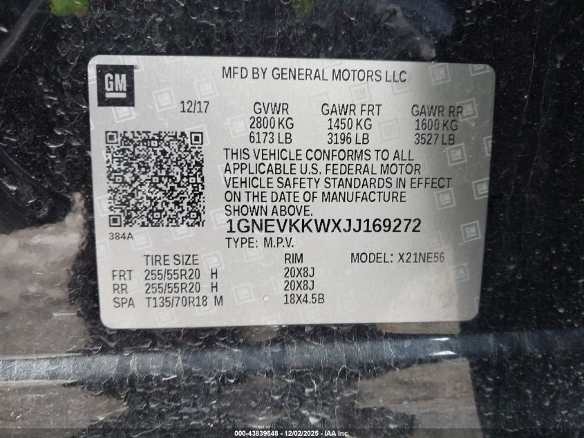 2018 CHEVROLET TRAVERSE 2018 року Бензин, 3.6, Повний привід, vin - 1GNEVKKWXJJ169272 з США