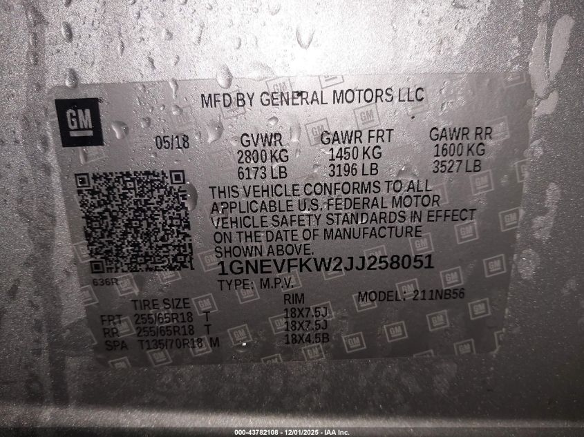 2018 CHEVROLET TRAVERSE 2018 року Бензин, 3.6, Повний привід, vin - 1GNEVFKW2JJ258051 з США