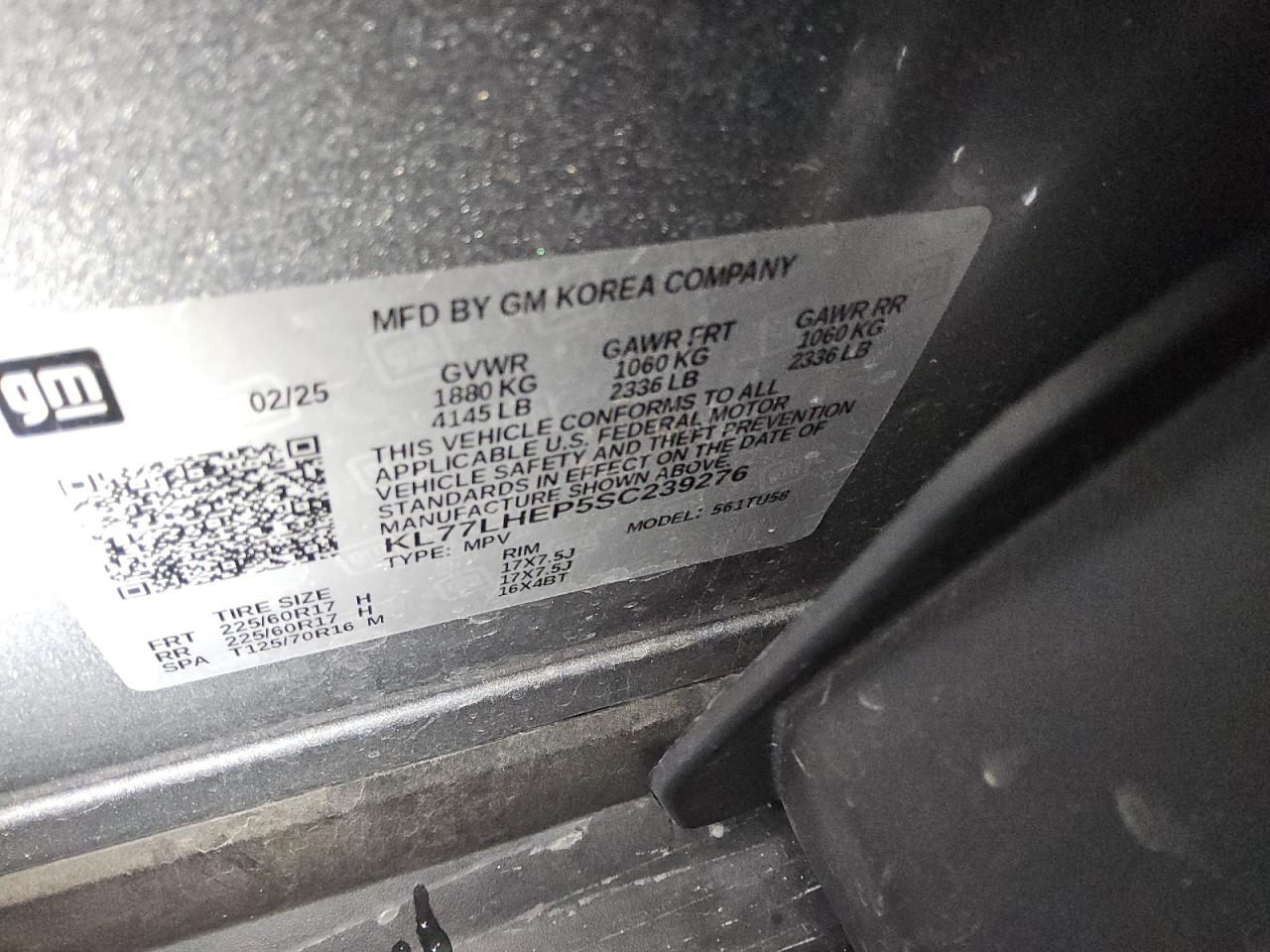 Колір СірийЦиліндри 3VIN KL77LHEP5SC239276Стан ЗаводитьсяУшкодження Передня або задня AutoRIA