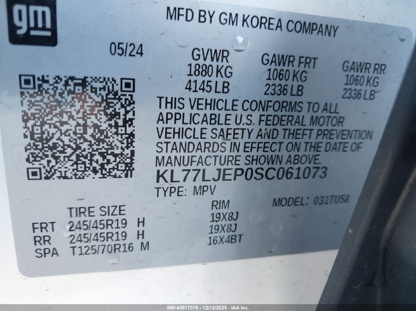 2025 CHEVROLET TRAX 2025 року Бензин, 1.2, Передній привід, vin - KL77LJEP0SC061073 з США