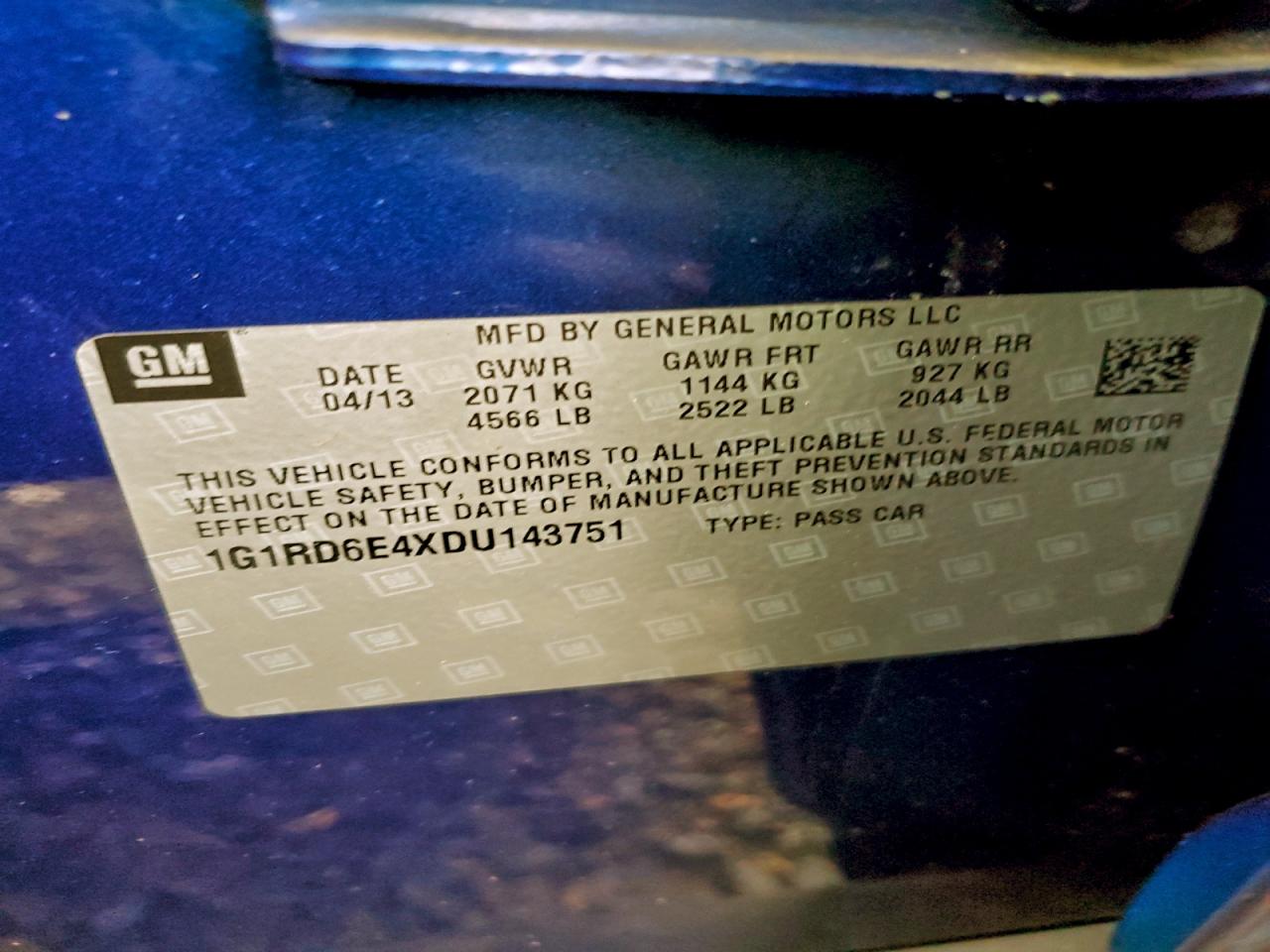 Колір СинійЦиліндри 4VIN 1G1RD6E4XDU143751Стан Заводиться та їде (перевірено)Ушкодження З боківДата аукціону 2025-12-05 AutoRIA