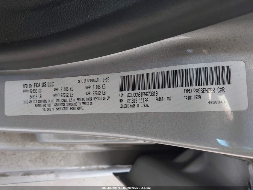 2015 CHRYSLER 200 2015 року Бензин, 2.4, Передній привід, vin - 1C3CCCAB1FN****** з США