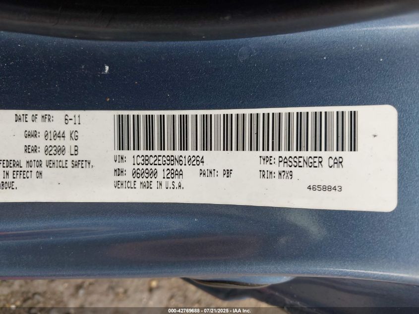 Колір СинійЦиліндри 6Привід Передній привідVIN 1C3BC2EG9BN******Стан НевідомоУшкодження Ліва сторонаДата аукціону 2025-09-24
