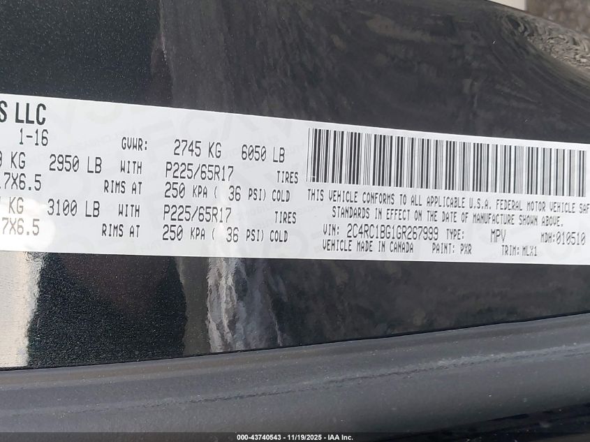 2016 CHRYSLER TOWN & COUNTRY TOURING L