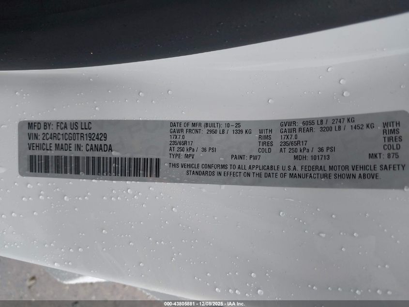 2026 CHRYSLER VOYAGER 2026 року Бензин, 3.6, Передній привід, vin - 2C4RC1CG0TR192429 з США