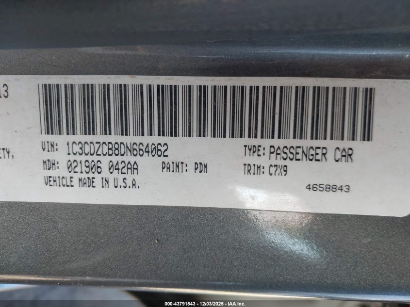 Колір СірийЦиліндри 4Привід Передній привідVIN 1C3CDZCB8DN664062Стан Заводиться та їде (перевірено)Ушкодження Передня або задня AutoRIA