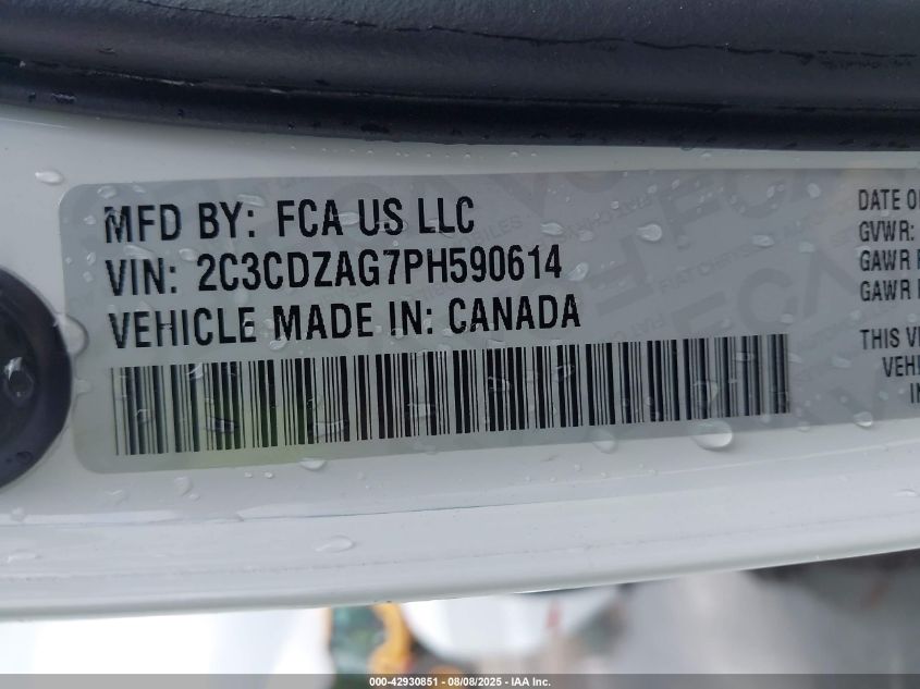 2023 DODGE CHALLENGER 2023 року Бензин, 3.6, Задній привід, vin - 2C3CDZAG7PH****** з США