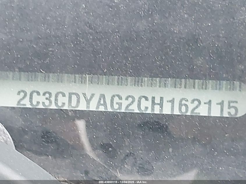 Колір БілийЦиліндри 6Привід Задній привідVIN 2C3CDYAG2CH162115Стан Заводиться та їде (перевірено)Ушкодження З боківДата аукціону 2025-12-16 AutoRIA
