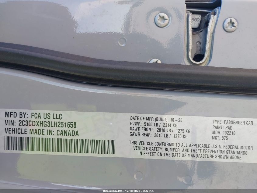 Колір СірийЦиліндри 6Привід Задній привідVIN 2C3CDXHG3LH251658Стан Заводиться та їде (перевірено)Ушкодження Передня ліва AutoRIA