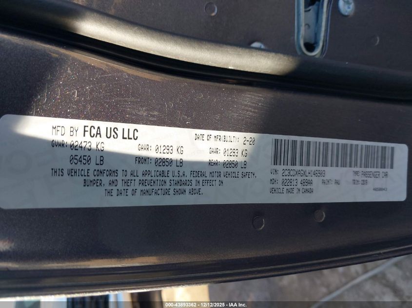 2020 DODGE CHARGER 2020 року Бензин, 3.6, Задній привід, vin - 2C3CDXAGXLH146903 з США
