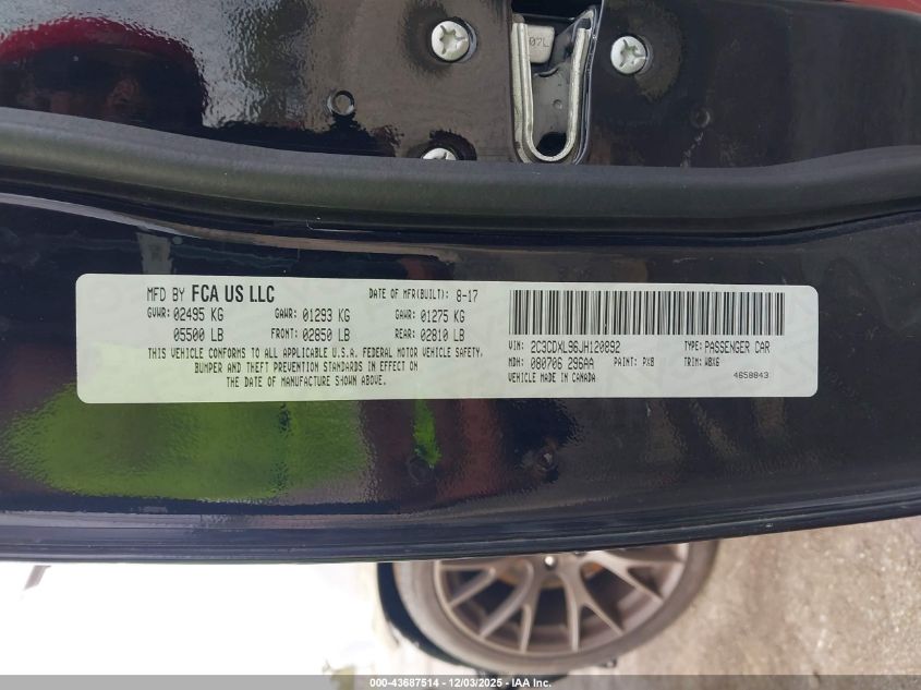 2018 DODGE CHARGER 2018 року Бензин, 6.2, Задній привід, vin - 2C3CDXL96JH120892 з США