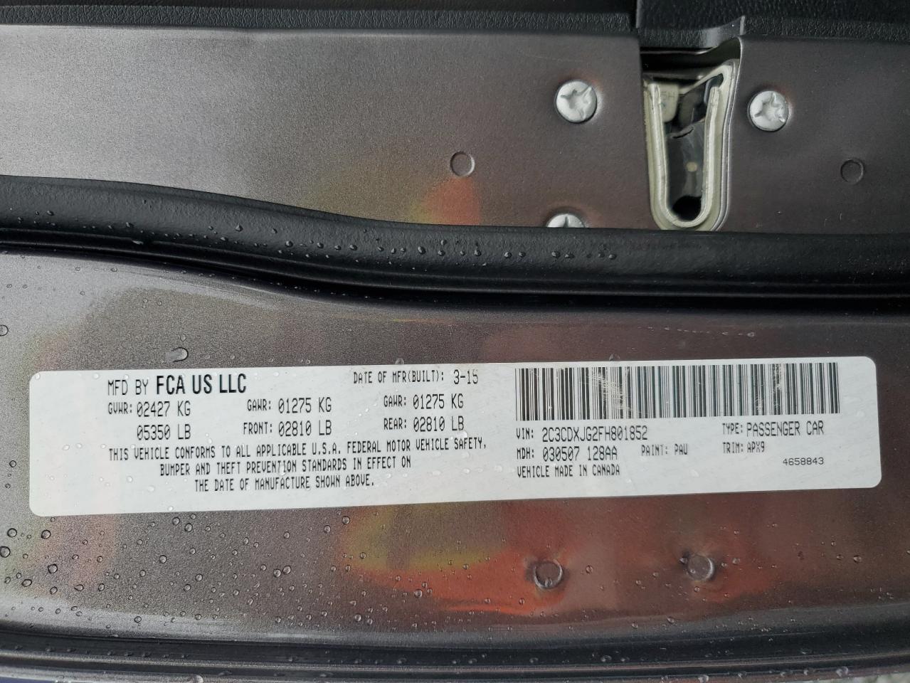 2015 DODGE CHARGER 2015 року Бензин, 3.6, Повний привід, vin - 2C3CDXJG2FH801852 з США