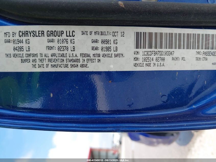2013 DODGE DART 2013 року Бензин, 2.0, Передній привід, vin - 1C3CDFBA7DD****** з США