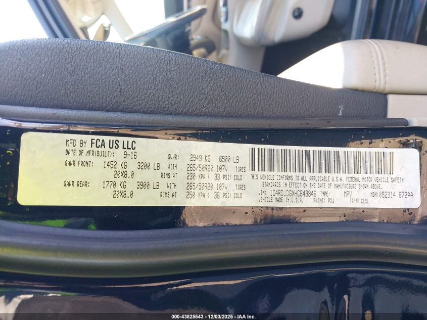 2017 DODGE DURANGO 2017 року Бензин, 3.6, Повний привід, vin - 1C4RDJDGXHC643846 з США