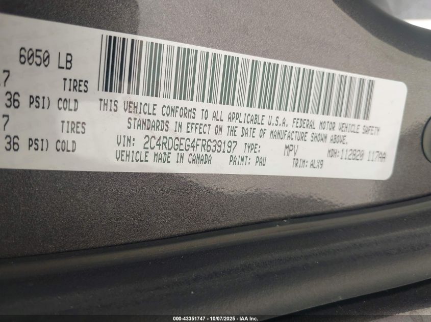 2015 DODGE GRAND CARAVAN 2015 року Бензин, 3.6, Передній привід, vin - 2C4RDGEG4FR639197 з США