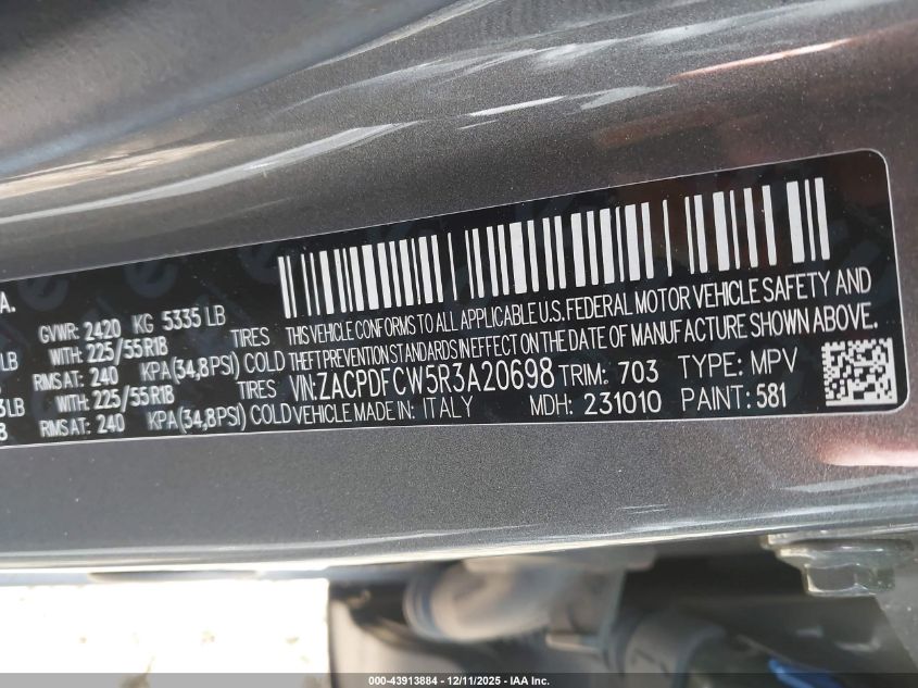 Колір СірийЦиліндри 4Привід Повний привідVIN ZACPDFCW5R3A20698Стан СтаціонарноУшкодження Механічні пошкодження AutoRIA