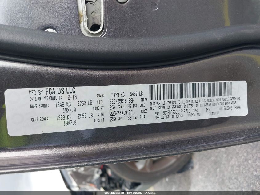 2019 DODGE JOURNEY 2019 року Бензин, 3.6, Передній привід, vin - 3C4PDCGG3KT716713 з США