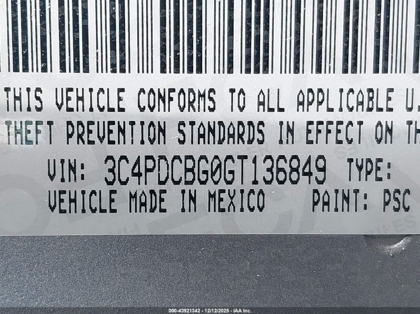 Колір СрібнийЦиліндри 6Привід Передній привідVIN 3C4PDCBG0GT136849Стан СтаціонарноУшкодження Перекидання AutoRIA